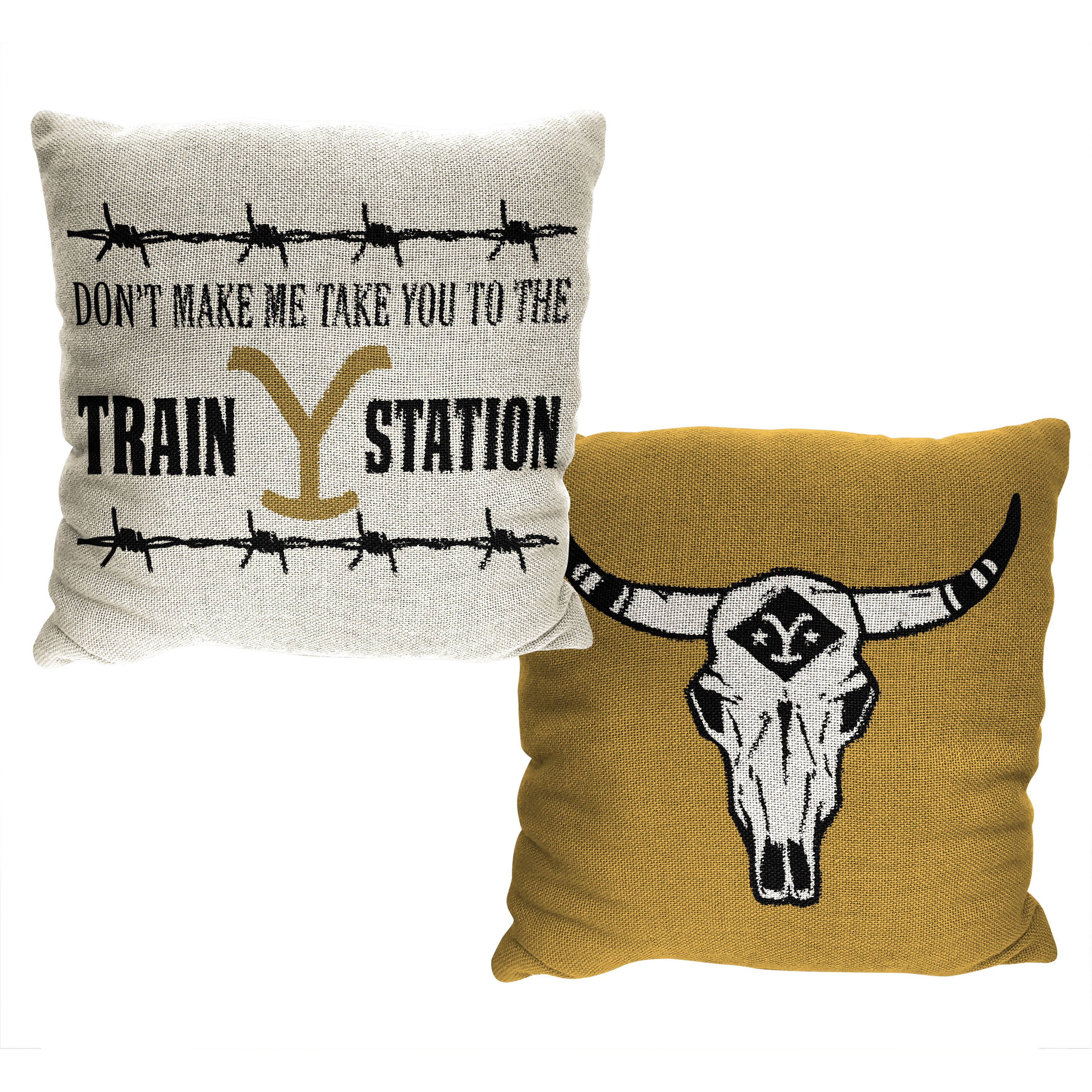 Elevate your home decor with this Yellowstone "Train Station" Soft and Comfortable Decorative Jacquard Pillow. Measuring 20" x 20", this pillow is the perfect size to rest your head on or add a pop of visual interest to a couch or armchair. Made of 100% Acrylic, with a 100% Polyester fill, this pillow is as cozy as it is stylish. The different design on the front and back of the pillow provides versatility in styling, allowing you to mix and match with other decorative items to create your own unique look.
